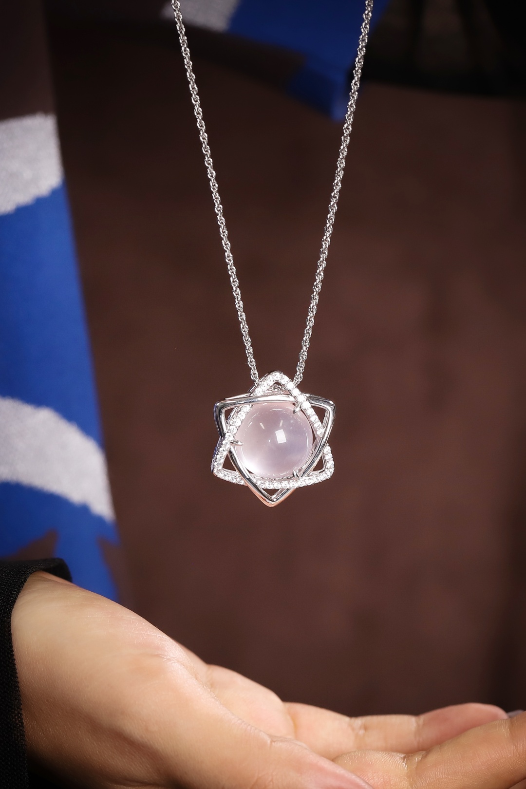 Douce lumière des étoiles | Pendentif en quartz rose en forme d'étoile à six branches