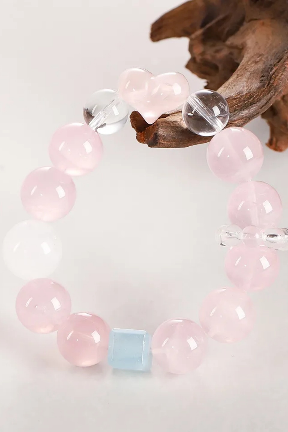 Romantic Intertwine | Heart Rose Quartz Beaded Bracelet