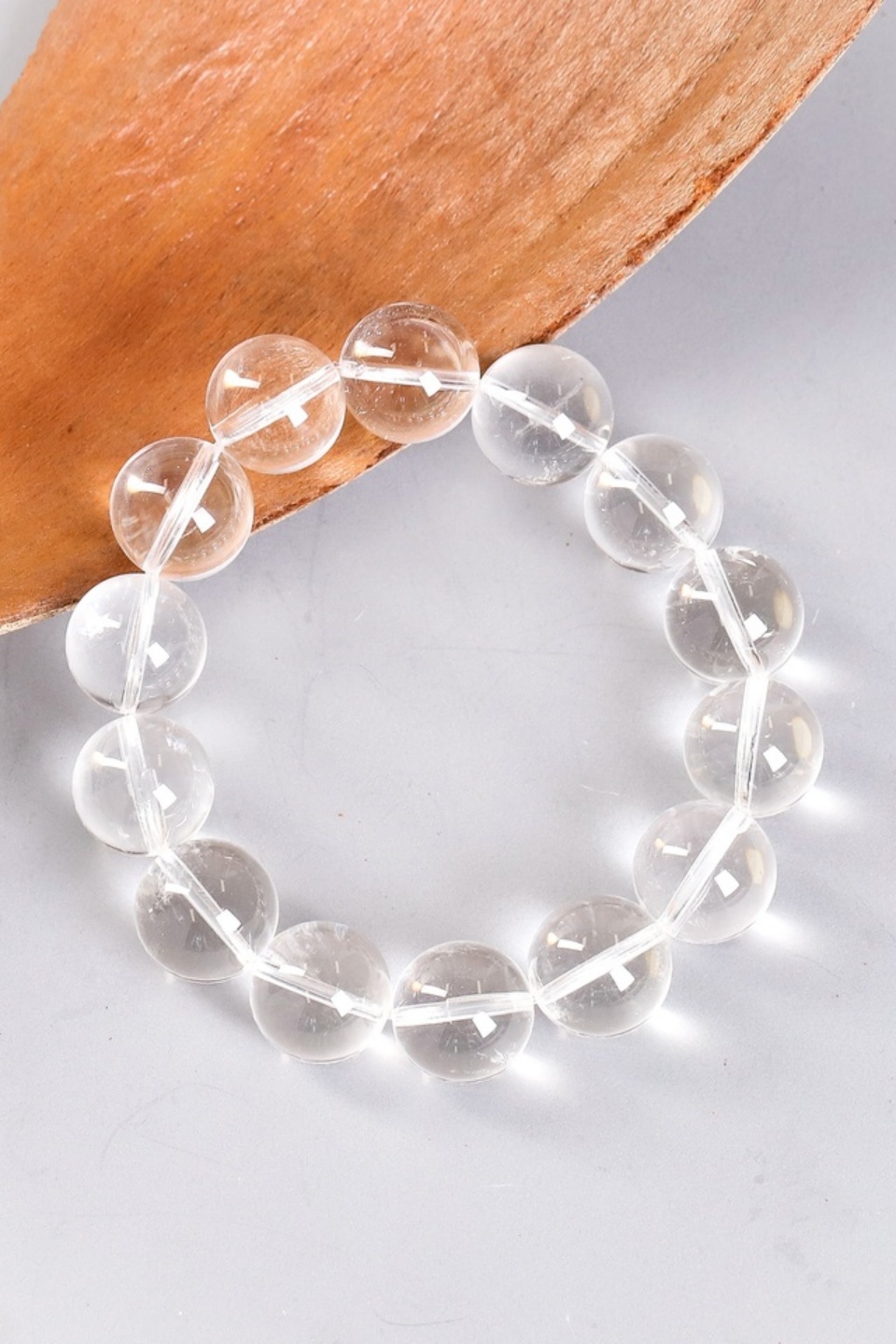Crystal bracelet with beads bearing natural "Lemurian imprint," known for high vibrational frequency, unique in texture.