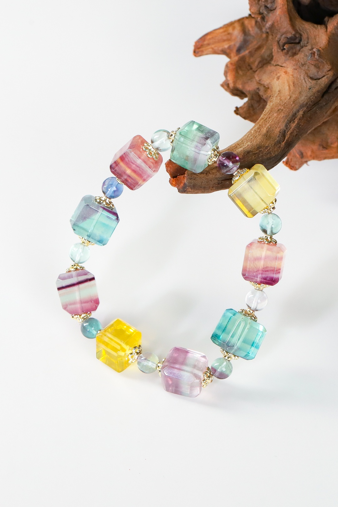 Rainbow Rhyme Sequence | Seven-Colored Fluorite Sugar Cube Bracelet